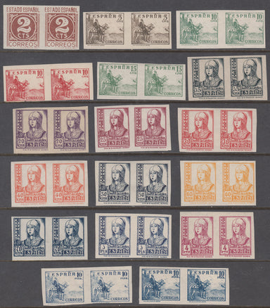 1937 SPAIN ISABEL & CID IMPERF PAIRS (ED.815s-831s) MNH/MH VF