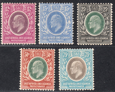 1907-08 BRITISH EAST AFRICA & UGANDA KEVII (SG# 38-42) MH FINE Pencil notings on back/ tone spot on 12c (sg38)