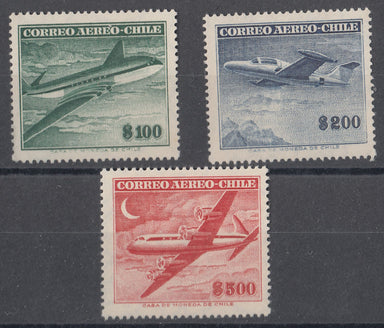 1955-56 CHILE AIRMAIL/ DOUGLAS DC-6 (YVERT# 160-162) MNH VF