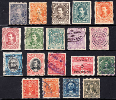 COSTA RICA CLASSICS ASSORTMENT OF 19 USED STAMPS IN MIXED CONDIITON