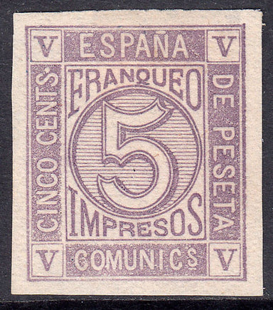 1872 SPAIN NUMERAL IMPERF COLOR PROOF LILAC (ED.117s) MNG