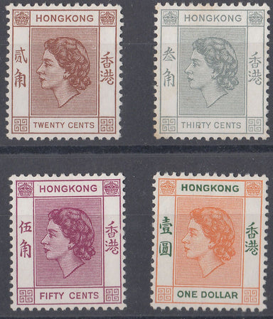 1954-62 HONG KONG QEII DEFINITIVES (SG181, SG183, SG185 & 187) MH VF