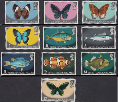 1972-73 SOLOMON ISLANDS BUTTEFLIES/FISHES 10VALUES MNH FINE GUM SKIPS ON SOME VALUES